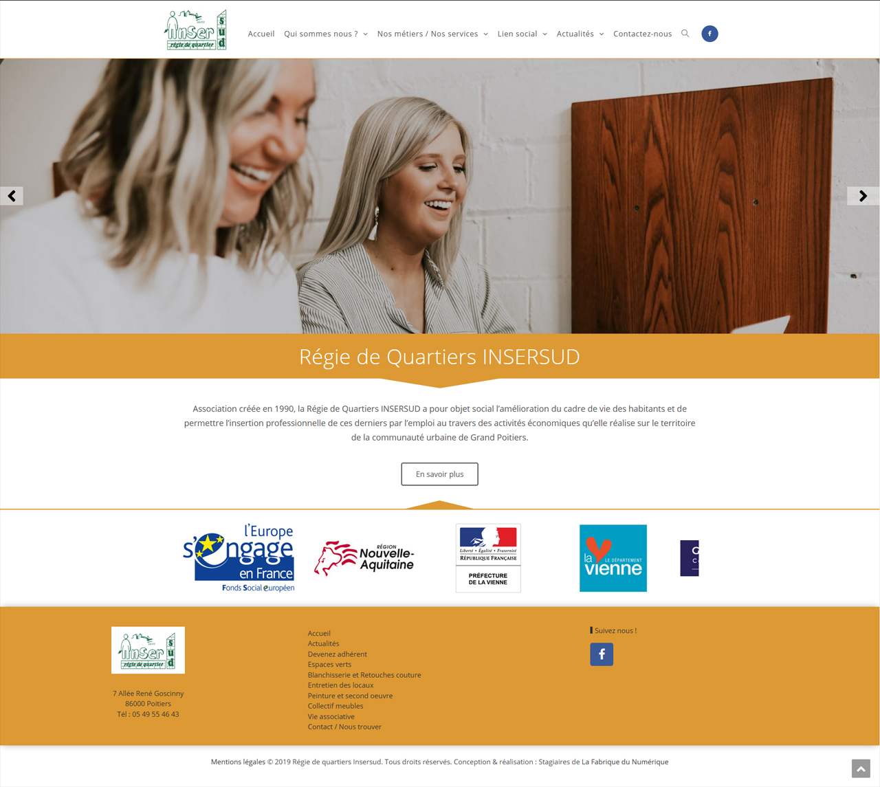 Web site project made during a training center session in 2019 at La Fabrique du Numérique. This work was a team project realized with a group of six persons, web developers and community managers for the organization Insersud